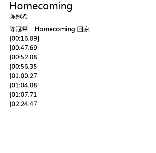 | [00:00.24] | 陈冠希 - Homecoming 回家 |
