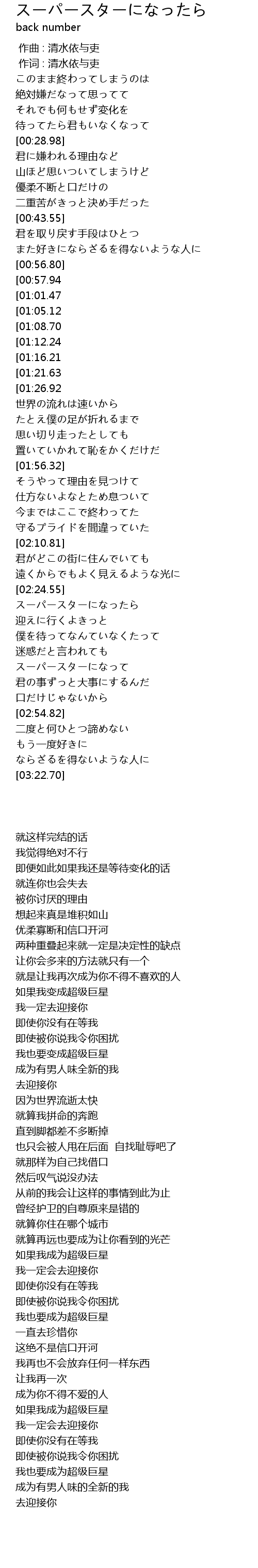| [03:37.66][01:12.24] | スーパースターになって |