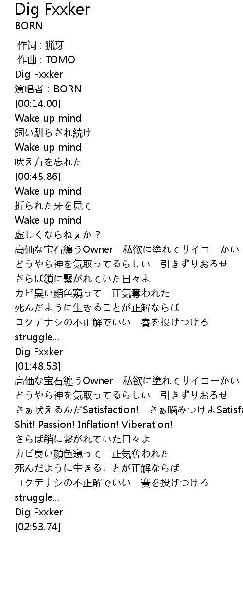 | [02:13.50] | さぁ吠えるんだSatisfaction! さぁ噛みつけよSatisfaction! |