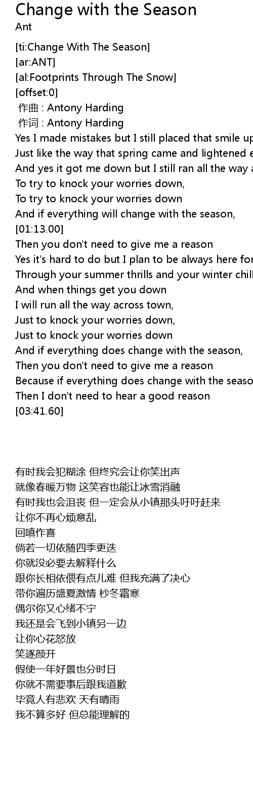 | [00:15.69] | Just like the way that spring came and lightened everything |