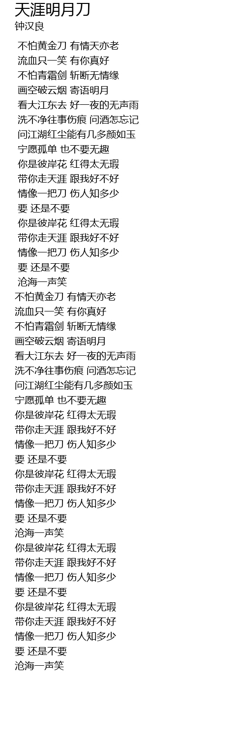 | [03:50.390] | 情像一把刀 伤人知多少 |