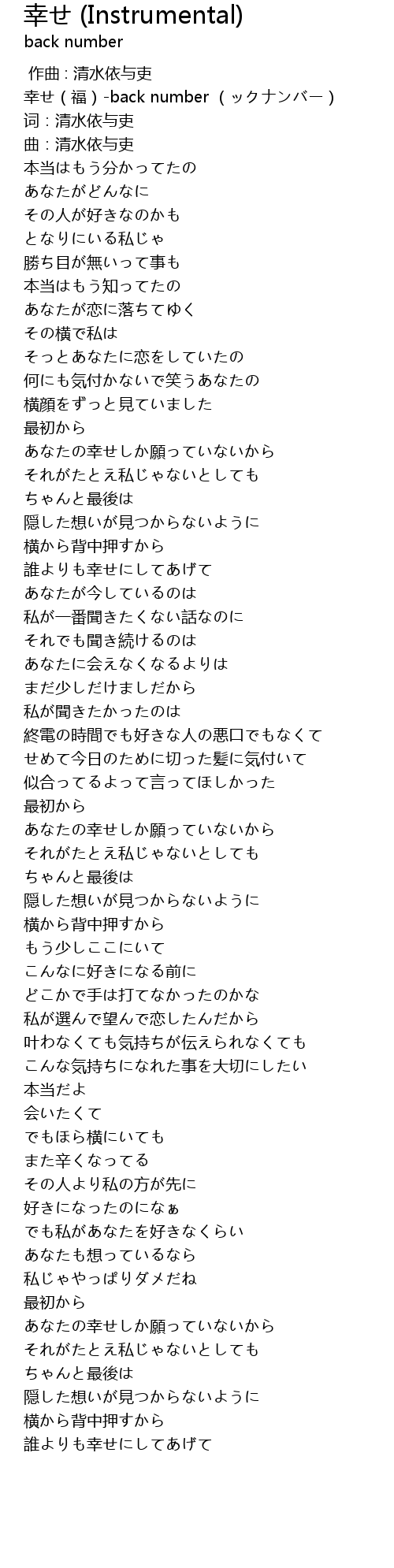 | [00:00.343] | 幸せ(福)-back number (ックナンバー) |