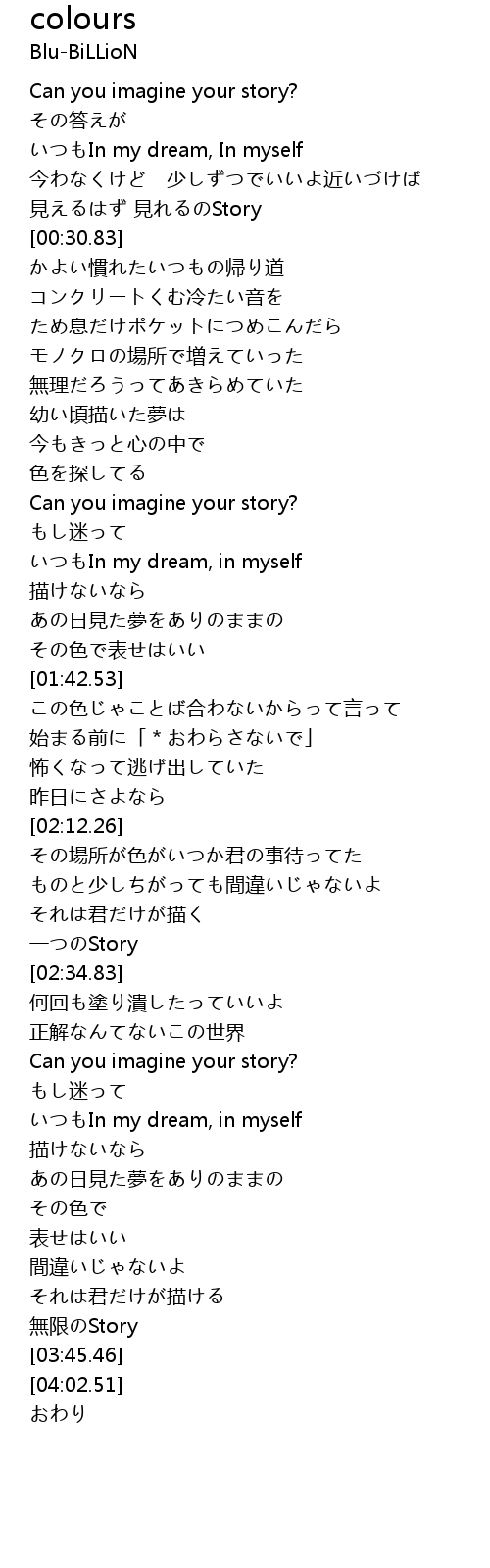 | [02:30.44] | 一つのStory |