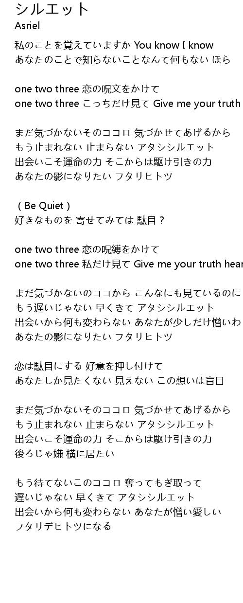| もう遅いじゃない 早くきて アタシシルエット | |
