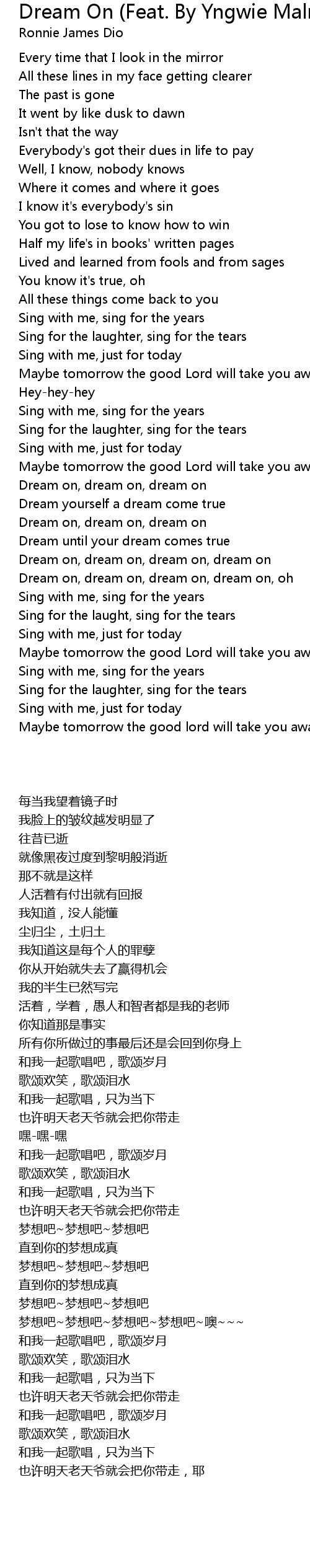 Dream on, dream on, dream on |