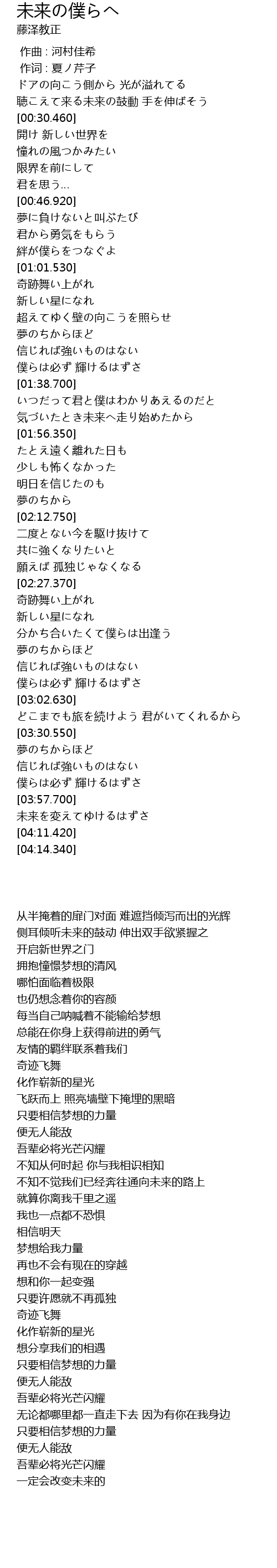 | [02:53.730] | 僕らは必ず 輝けるはずさ |