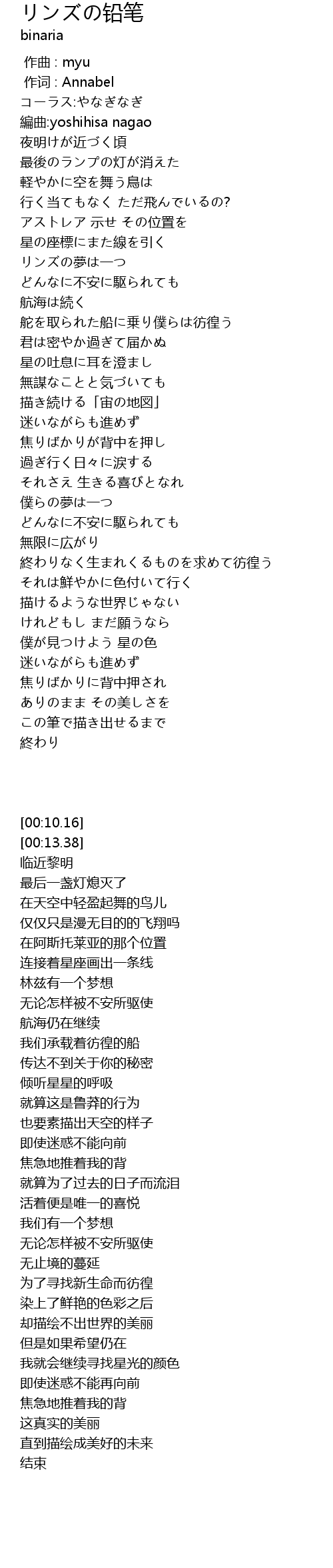 | [00:13.38] | biān qū: yoshihisa nagao |