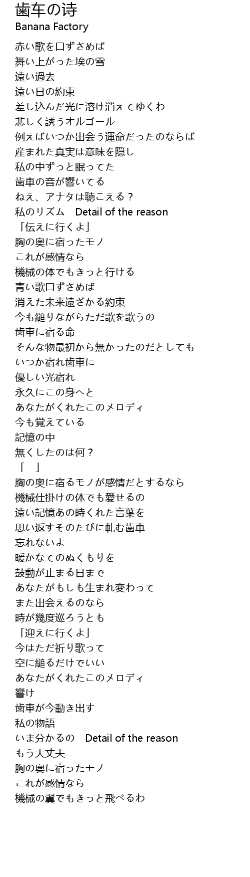 | [03:29.600] | 思い返すそのたびに軋む歯車 |