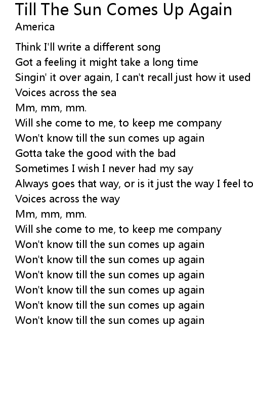 Won't know till the sun comes up again |