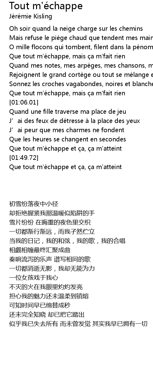 | [01:43.51] | Que tout m'é chappe et a, a m' atteint |