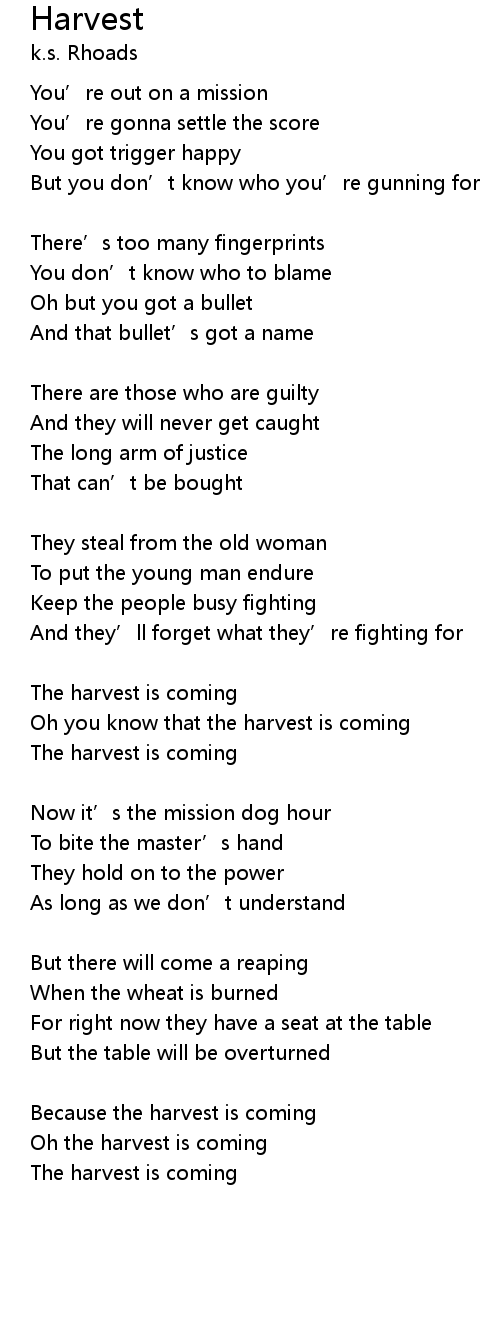 | Oh the harvest is coming | |