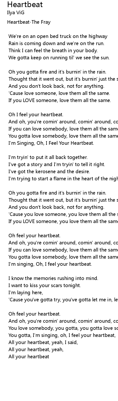 You gotta, I'm singing, oh, I feel your heartbeat, |
