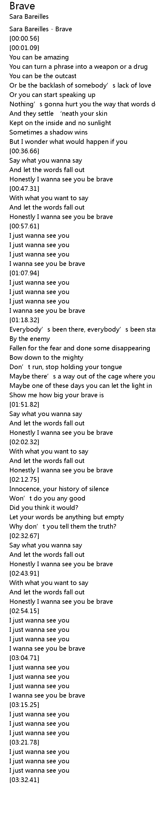 | [03:11.52] | I wanna see you be brave |