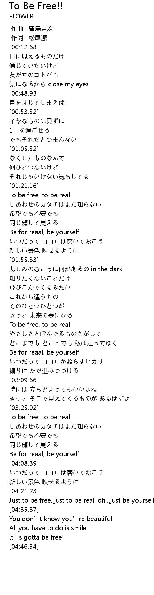 | [04:28.60] | Just to be free, just to be real, oh just be yourself |