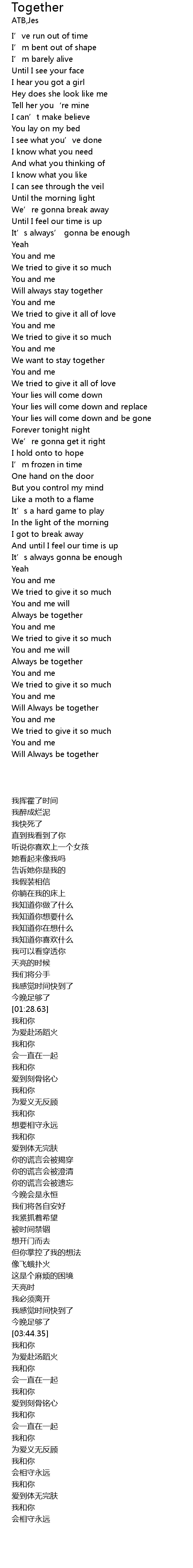 | [04:05.44] | Always be together |