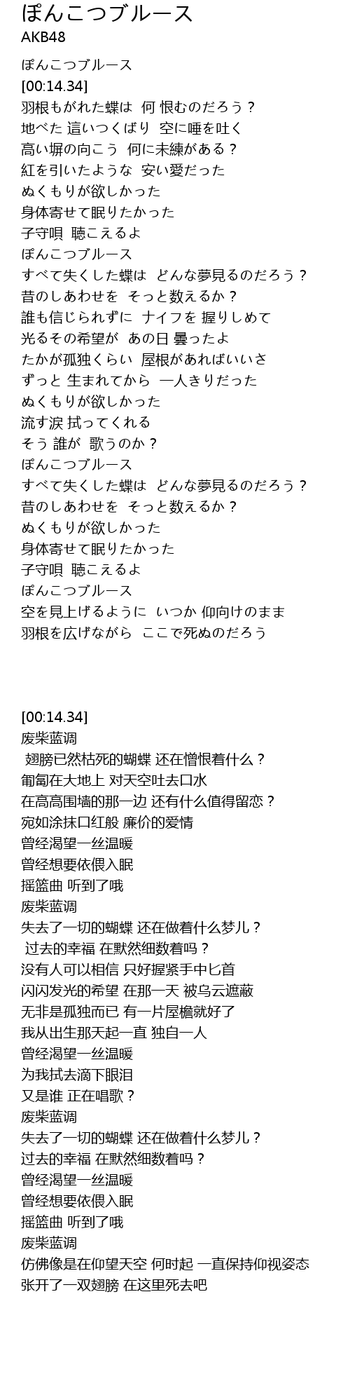 | [00:14.34] | ぽんこつブルース |