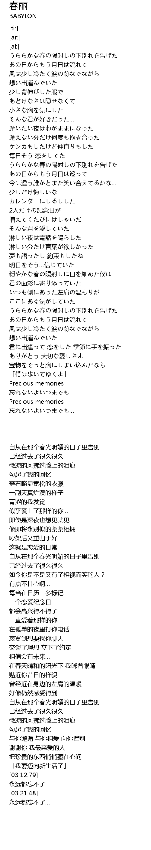 | [03:12.79] | Precious memories |