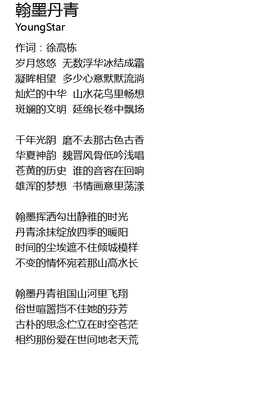 | hàn mò dān qīng zǔ guó shān hé lǐ fēi xiáng | |