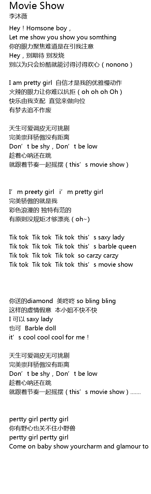 | I am pretty girl zi xin cai shi wo de you ya man dong zuo | |