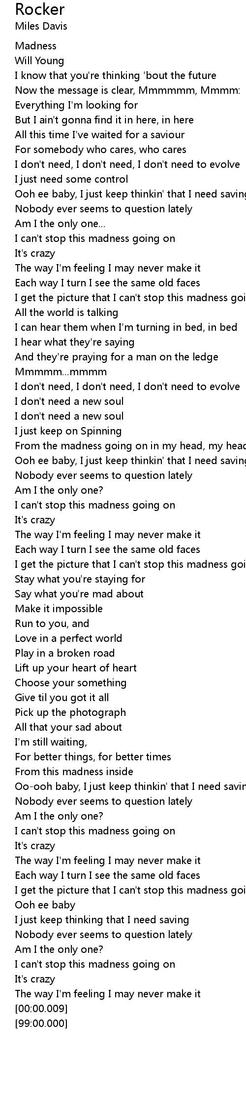 I can't stop this madness going on |