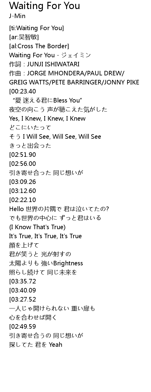 | [00:00.93] | Waiting For You - ジェイミン |