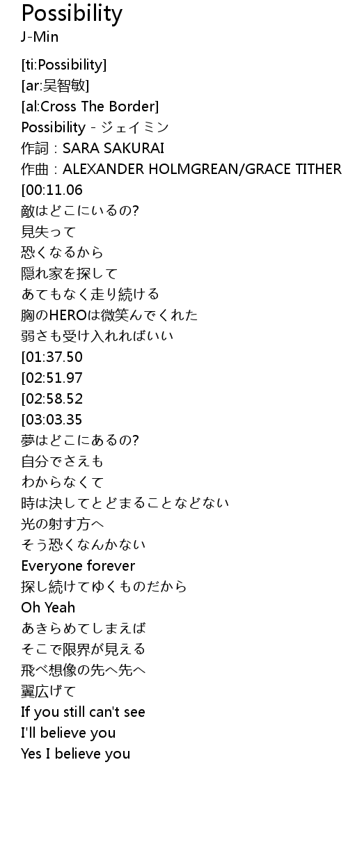 | [00:00.88] | Possibility - ジェイミン |
