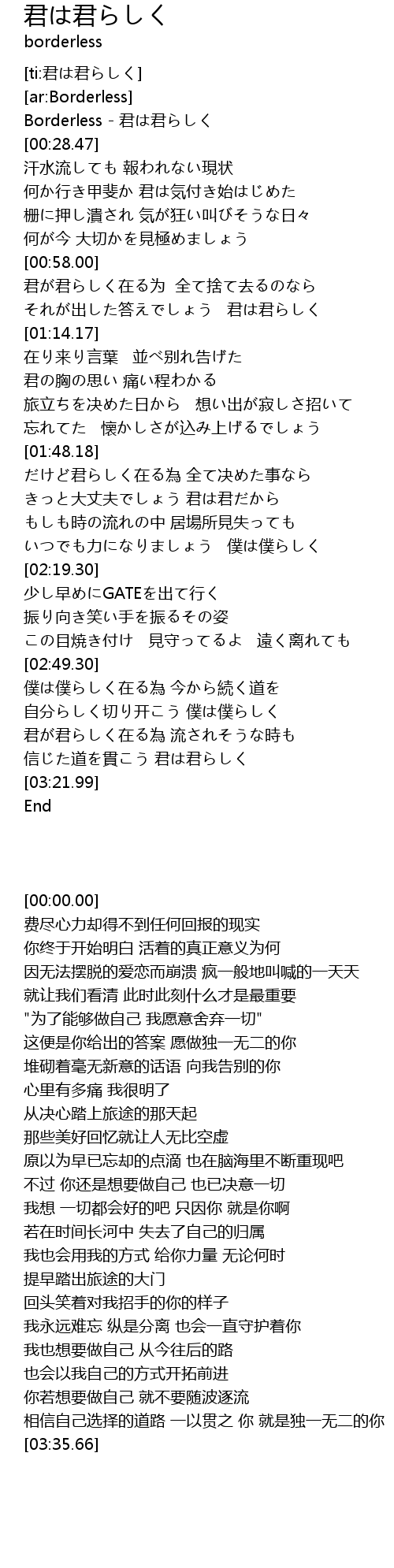 | [00:00.00] | Borderless - 君は君らしく |
