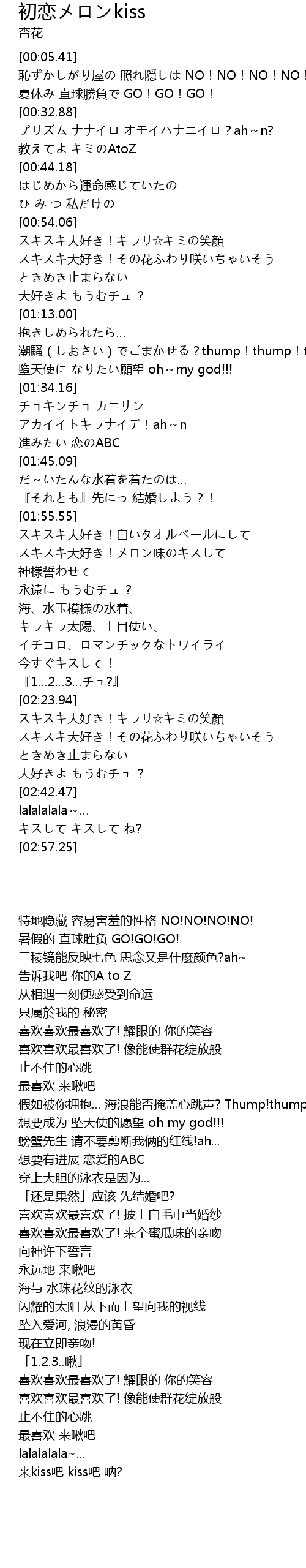 | [02:01.48] | スキスキ大好き!メロン味のキスして |