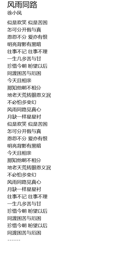 | [00:15.17] | shì shì huān xiào shì shì kǔ kùn |