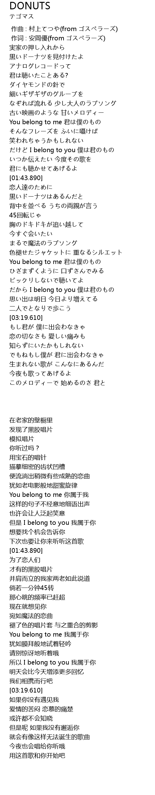 | [02:59.410] | だから I belong to you 僕は君のもの |