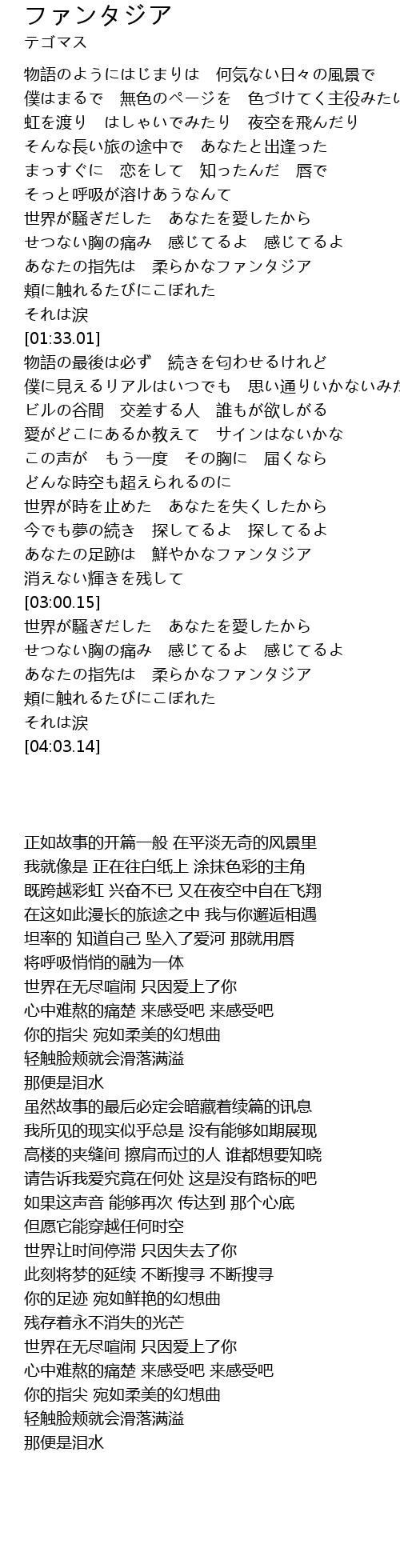 | [03:44.19] | あなたの指先は 柔らかなファンタジア |