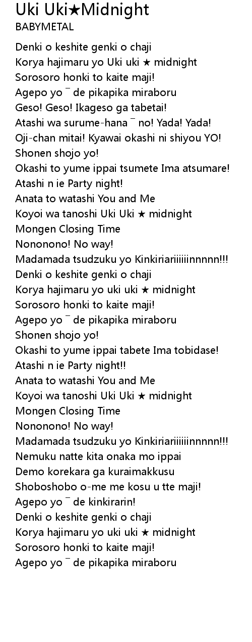 | Korya hajimaru yo Uki uki ★ midnight | |