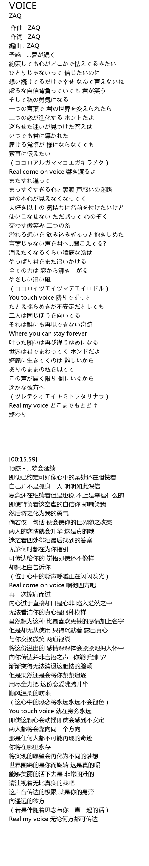 | [00:15.59] | bian qu: ZAQ |