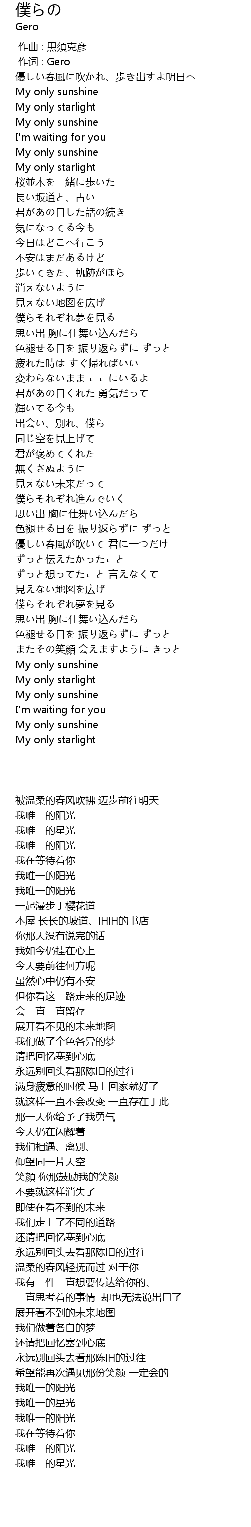 | [03:23.95] | 優しい春風が吹いて 君に一つだけ |