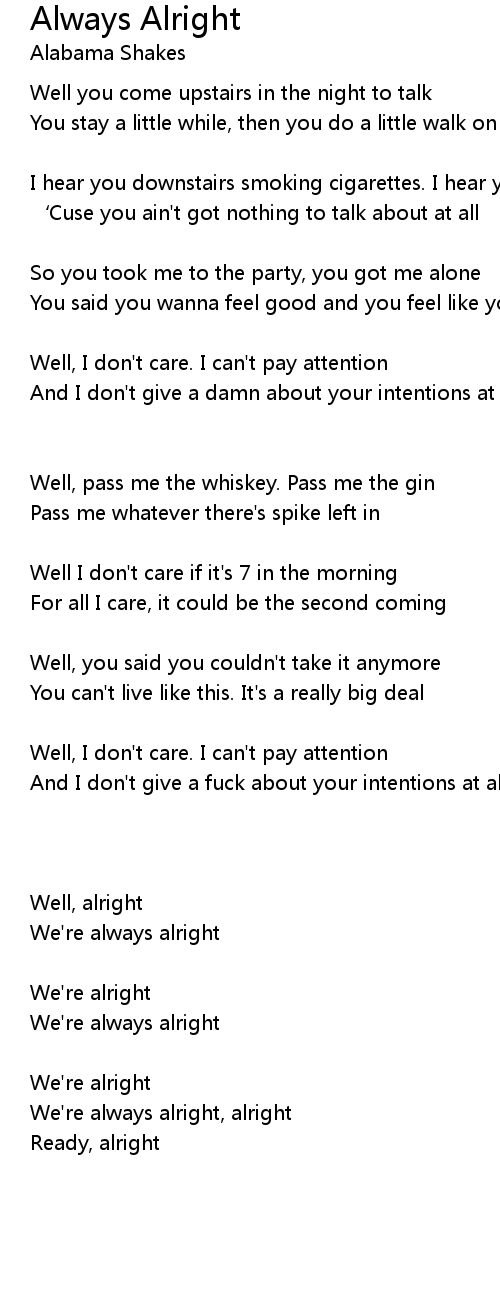 | We're always alright, alright | |