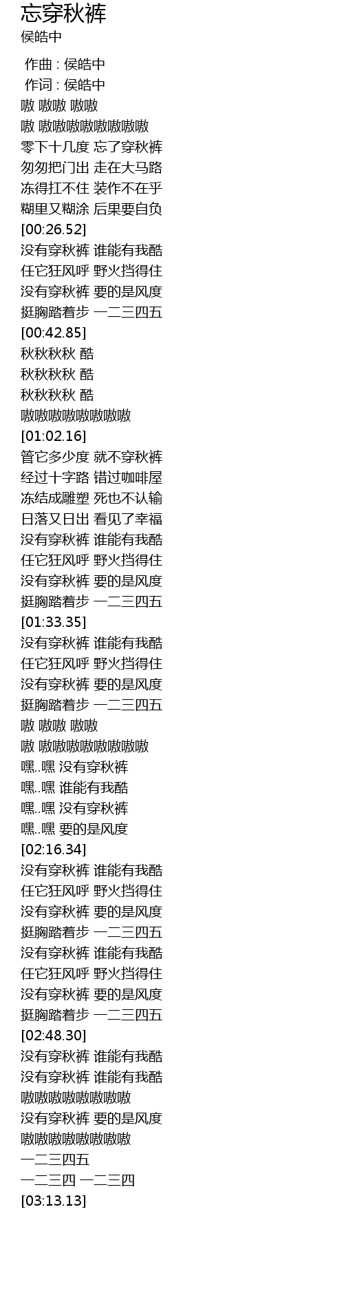 | [02:33.57] | 没有穿秋裤 谁能有我酷 |