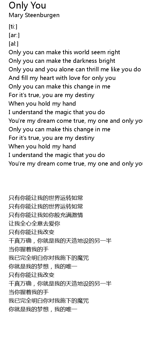 Only you can make this world seem right |