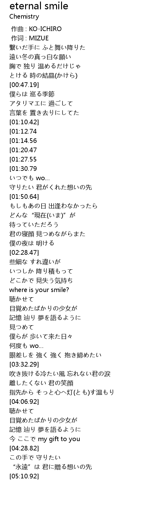 | [04:47.16][01:30.79] | 変わらない笑顔 |