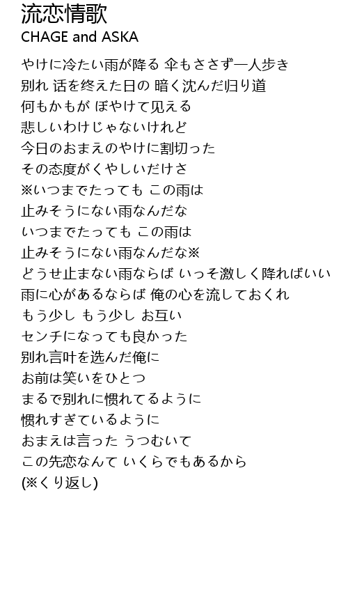 | 雨に心があるならば 俺の心を流しておくれ | |