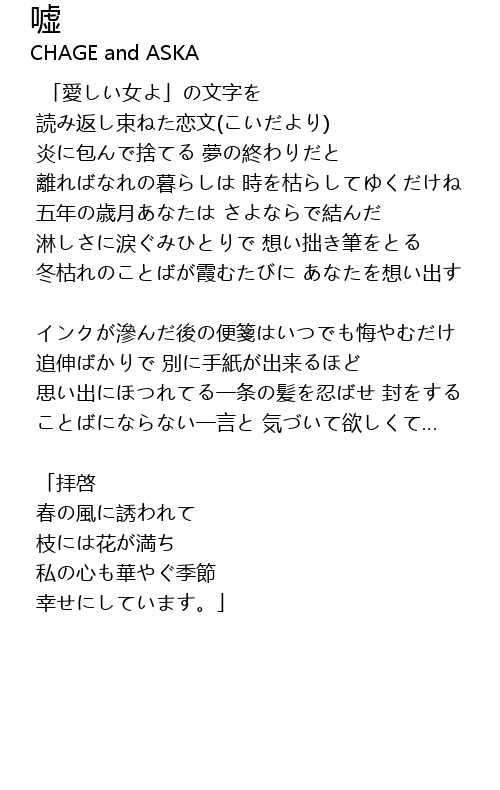 | 思い出にほつれてる一条の髪を忍ばせ 封をする | |