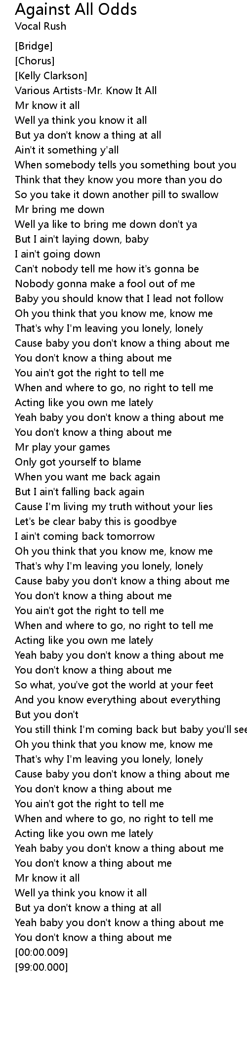Well ya think you know it all |
