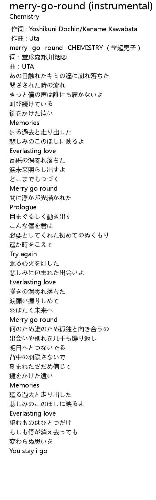 | [00:00.00] | merry -go -round -CHEMISTRY (学超男子) |