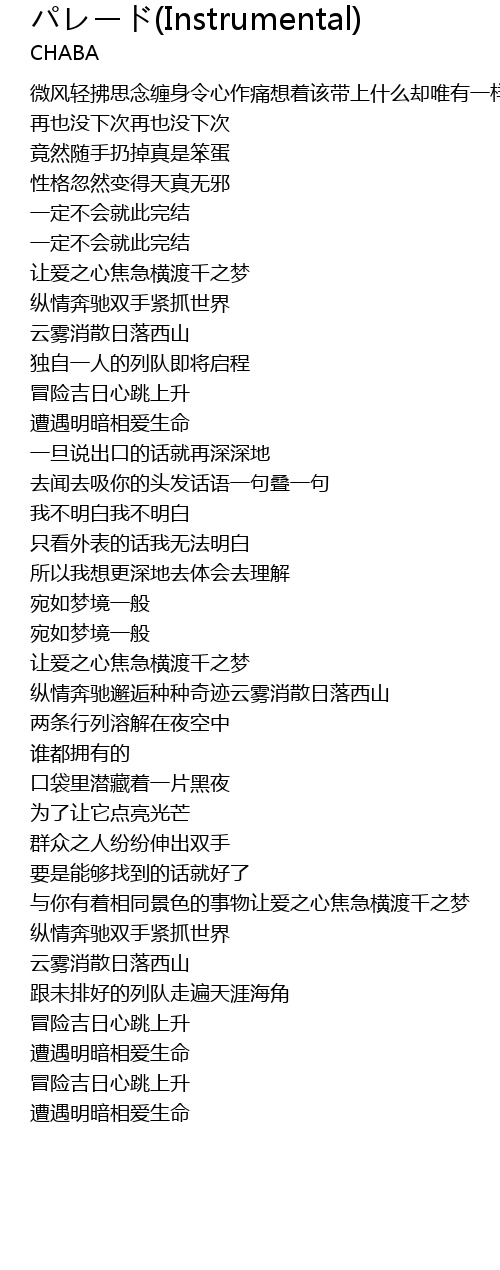 | [02:35.300] | 纵情奔驰邂逅种种奇迹云雾消散日落西山 |