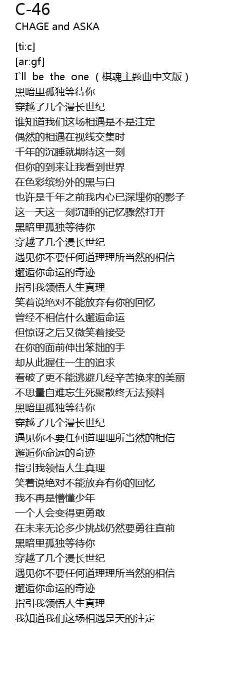 | [00:01.413] | I`ll be the one (棋魂主题曲中文版) |