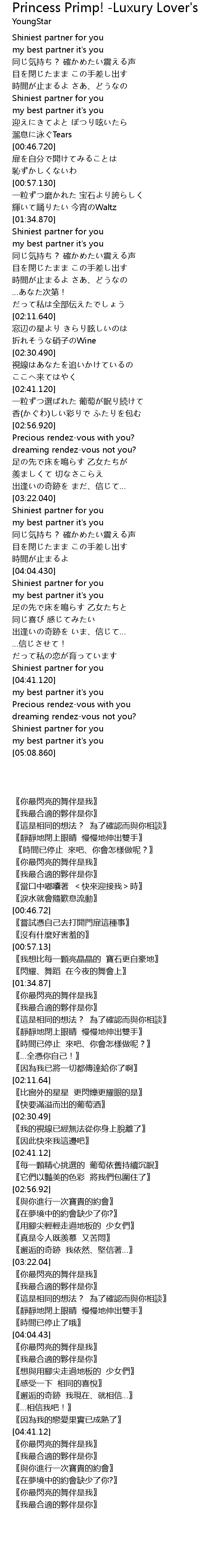 | [00:17.610] | 時間が止まるよ さあ、どうなの |