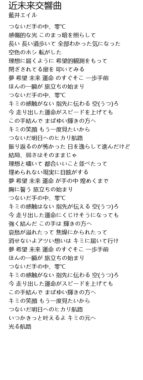 | 夢 希望 未来 運命 が手の中 煌めくまで | |