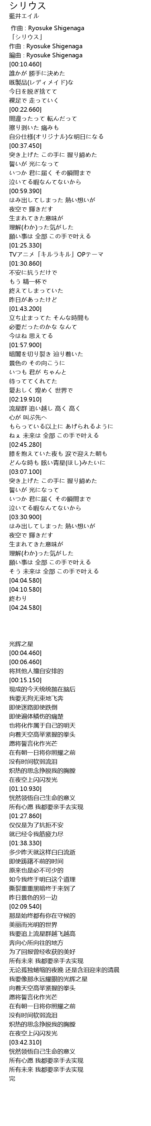 | [00:00.460] | 「シリウス」 |