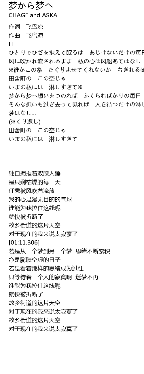 | 风に吹かれ流されるまま 私の心は风船あてはなし | |