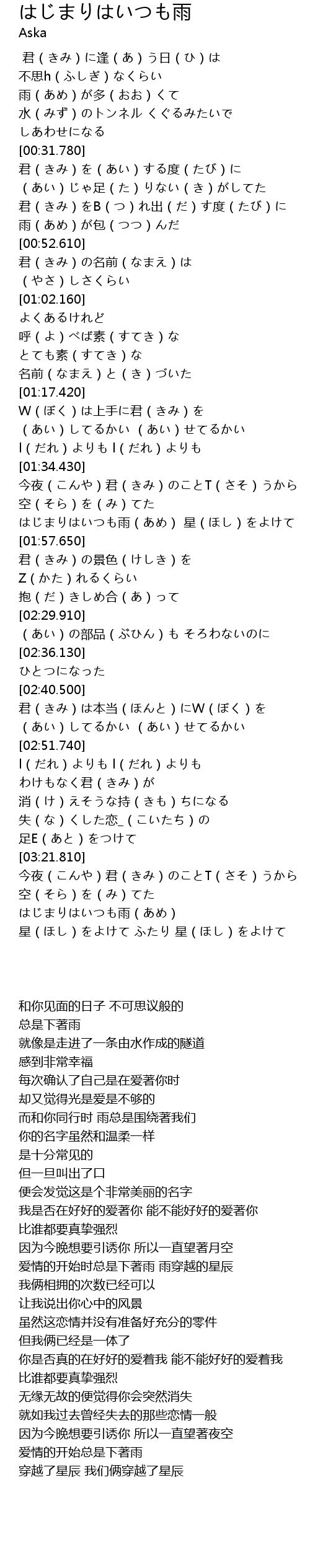 | [03:51.680] | はじまりはいつも雨(あめ) |