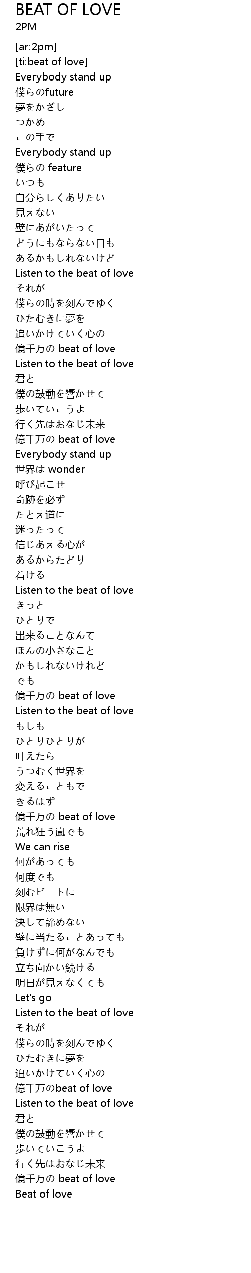 | [02:06.32] | Listen to the beat of love |